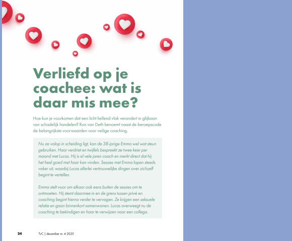 Hoe kun je voorkomen dat een licht hellend vlak verandert in glijbaan van schadelijk handelen? Ron van Deth benoemt naast de beroepscode de belangrijkste voorwaarden voor veilige coaching. |