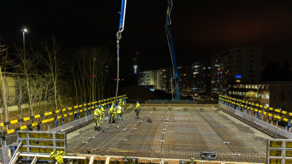 Nachtelijke betonstort van een brugdeel. © AWV |