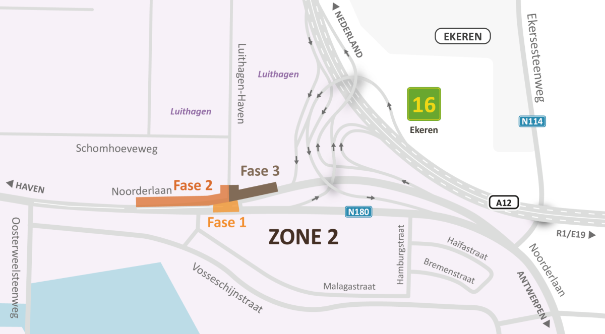 - vanaf de Noorderlaan kan verkeer naar Luithagen-Haven rijden.