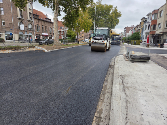 Walsen van toplaag asfalt ter hoogte van de Prins Leopoldlei. © AWV |