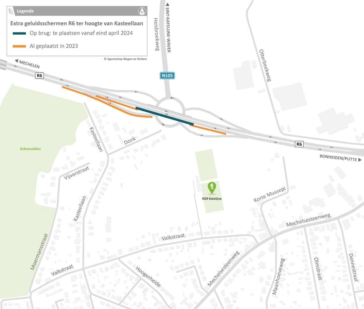 Bouw geluidsschermen op brug over rotonde Heisbroekweg |