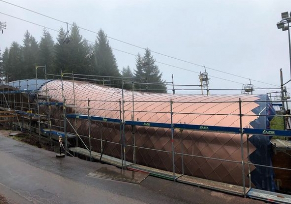 The new roofing of the LOTTO Thüringen EISARENA Oberhof is modern and elegant. The pre-anodized aluminium roofing, based on our X-Flex Copper 20 - which resembles a "snake skin" due to its scale-like arrangement pattern, forms the final layer of the track roofing, which will give the entire facility a completely new look, not only with a view to the Luge World Championships from 23 - 29 January 2023.