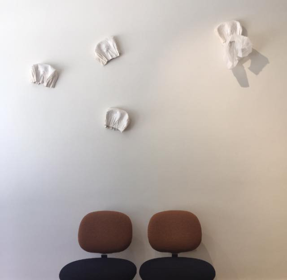 Leerkracht Keramiek, Pascale Hellebaut, stelt haar werk 'Flat bags' tentoon in de winkel Rosemary te Antwerpen (B)