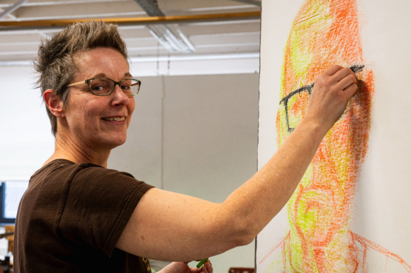 'Ik zit in een boeiende groep Levend Model, waar alle leerjaren samenzitten. Als leerling van het tweede jaar is het heel stimulerend om te zien waarmee de laatstejaars bezig zijn. Dat inspireert mij enorm. Ik voel me als een spons die alles opzuigt wat ze aangereikt krijgt.'