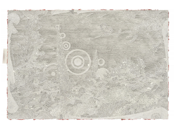 Fabrice Souvereyns en Hopstreet Gallery nodigden zes kunstenaars uit van wie het werk de dialoog aangaat met het nieuw werk van Souvereyns. Bij het tekenen hanteert Fabrice een aantal terugkerende uitgangspunten. Als drager opteert hij voor Simili Japon papier. Het potlood, aangevuld met gom en breekmes, vormt zijn enige werkinstrument. De aanraking van het potlood met het papier varieert van hard tot zacht, de lijnen balanceren van fragiel tot diepe inkervingen. |
