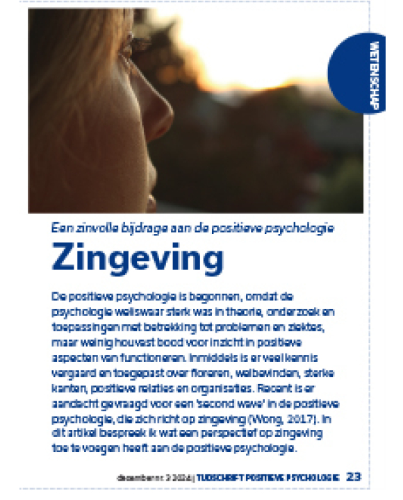 Lees gratis deze zinvolle bijdrage aan de positieve psychologie