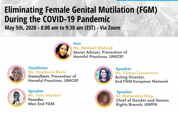 | | Webinar - Eliminating FGM During the COVID-19 Pandemic | | On the 5th of May, Chiara Cosentino, End FGM EU's Head of Policy and Advocacy, represented the Network at the FGM Donor Working Group Webinar on responding to the impact of COVID-19 on the elimination of Female Genital Mutilation. | | |