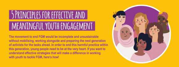 | | Youth Engagement Manifesto: Tackling FGM in Europe | | In May, we published the Youth Engagement Manifesto, produced in cooperation with the Network’s Youth Engagement Working Group, the Youth Ambassadors and Integrate UK. Inside, you will find the main challenges to ensure effective youth engagement, our recommendations and the 5 Principles for Effective and Meaningful Engagement of Youth. | | |